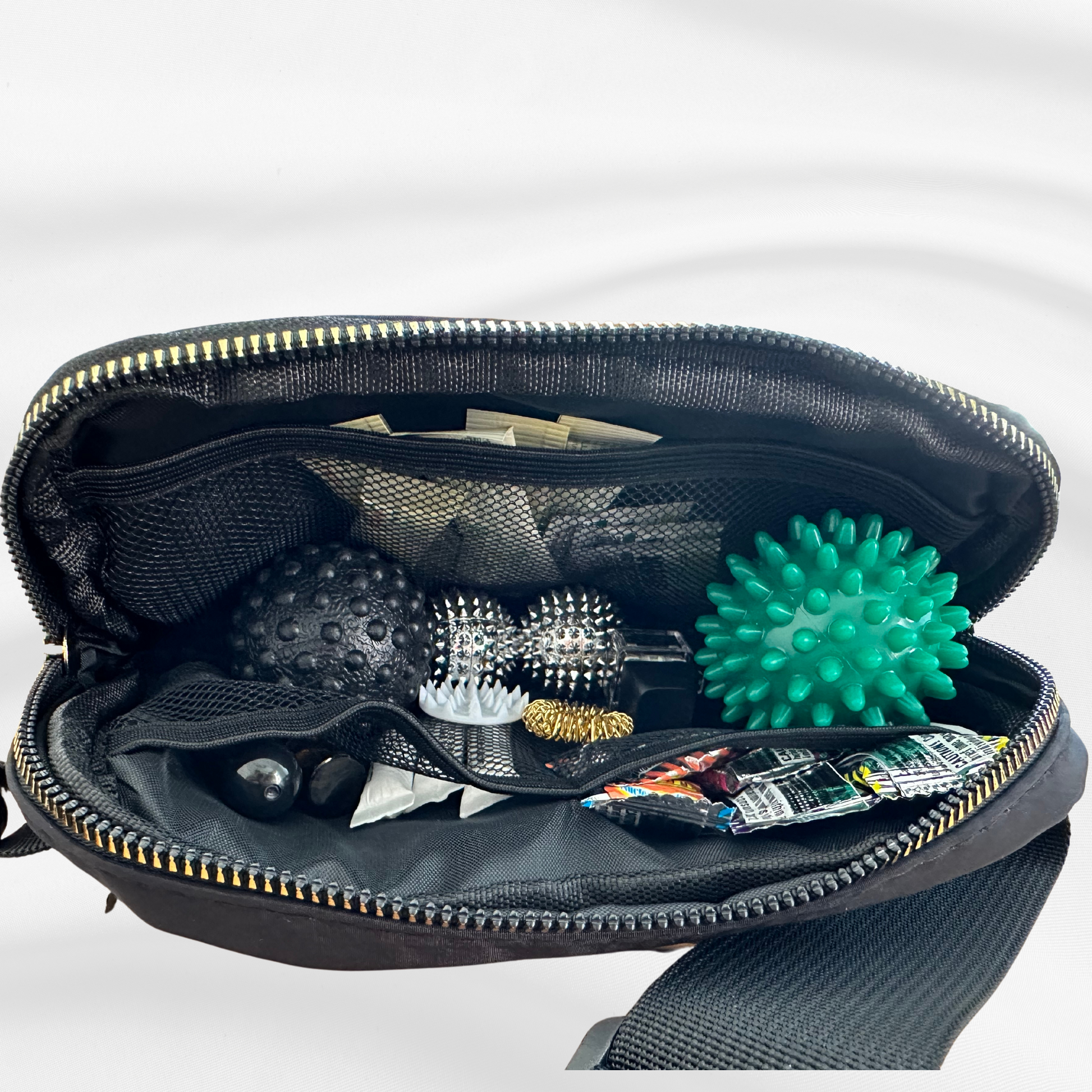 Unser Skillkoffer Premium ist nicht nur funktional, sondern auch stilvoll. Diese modische Bauchtasche ist verstellbar und bietet ein Hauptfach mit vier Unterfächern sowie ein separates Nebenfach, sodass du all deine Skills perfekt organisiert und jederzeit griffbereit hast. Ideal für den Alltag, egal ob im Büro, zu Hause oder unterwegs – dieser Skillkoffer unterstützt dich effektiv in jeder Anspannungssituation.