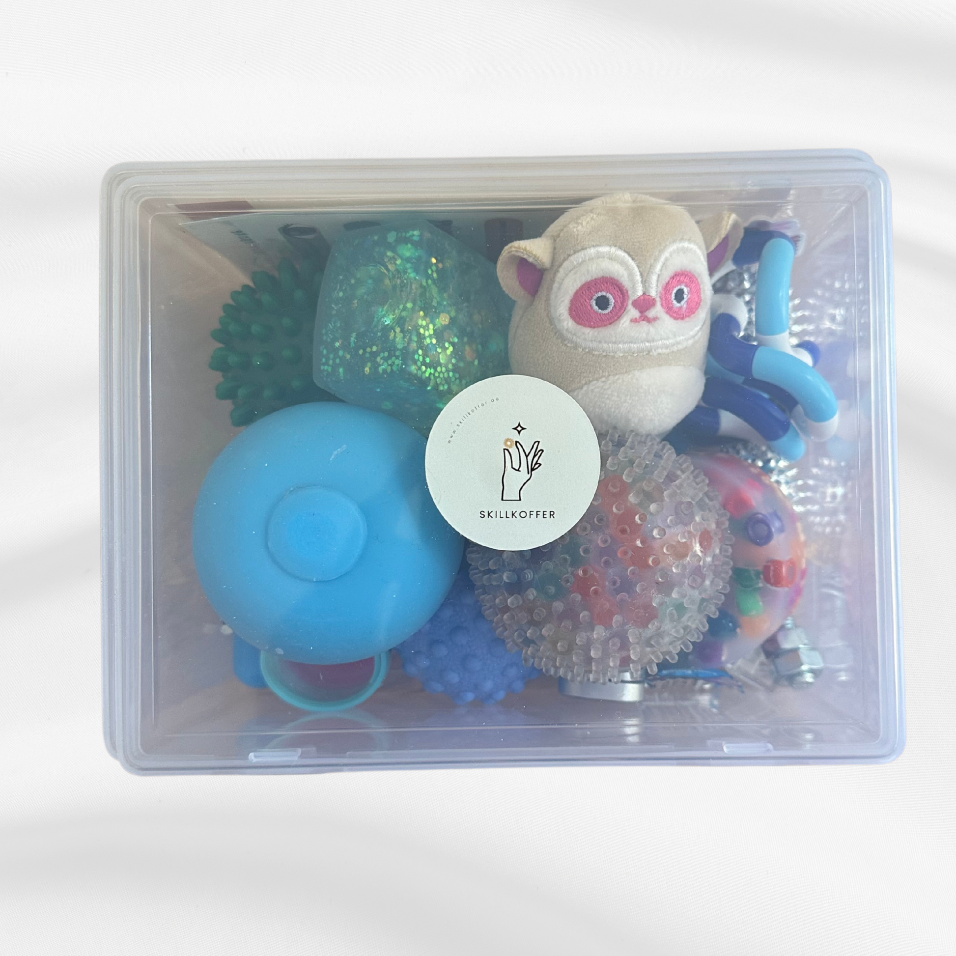 Der Skill-Schulkoffer enthält eine sorgfältig zusammengestellte Auswahl an Materialien zur Selbstregulation über alle Sinne – leise, kindgerecht und praxistauglich im Schulalltag einsetzbar.